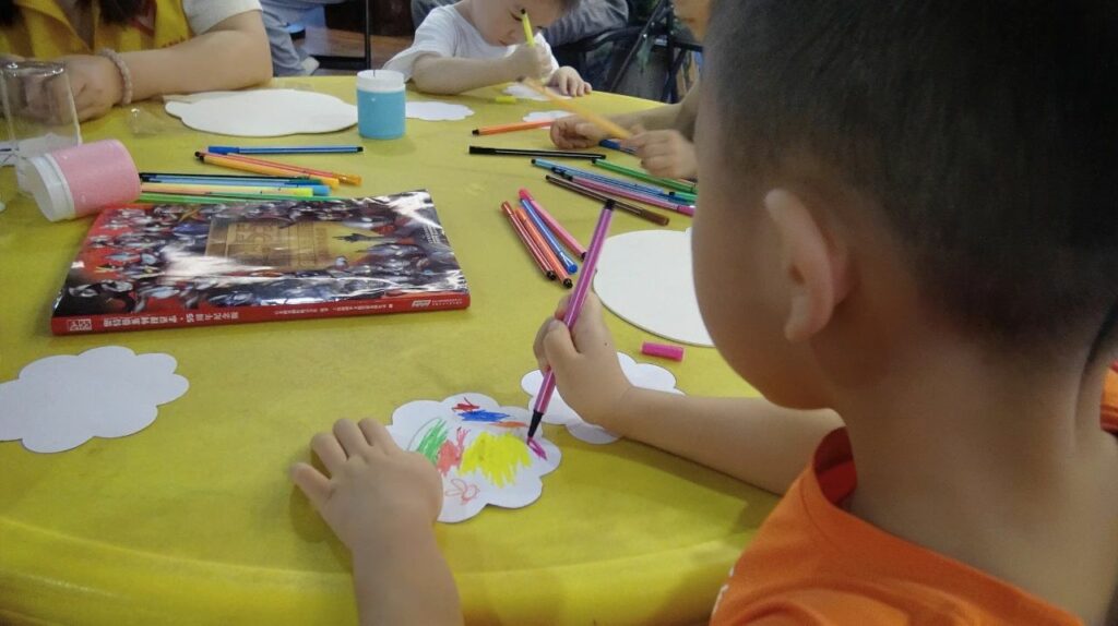 工作人员分发画纸,孩子们亲自设计月饼款式,画出自己心目中最美味的月饼。“我画的月饼很大很大,因为我要和我的家人一起吃。”孩子的话语虽简单,却流露出中秋节的内涵——团圆。