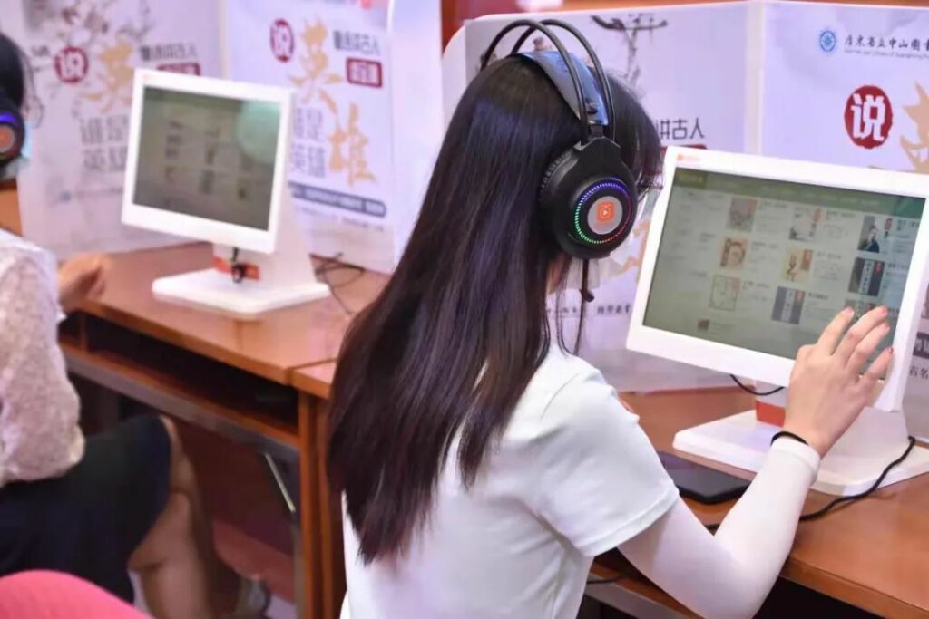 除了分享内容本身,现场还特意搭建了百听融合阅读体验区。通过百听听读一体机设备,现场读者不仅聆听到了优秀的金庸武侠有声作品,还纷纷体验了有声书的录制,化身江湖侠客,在现场演绎读者声音里的“武侠传奇”。在体验过后,不少读者意犹未尽,在现场拍照打卡留念,在社交媒体上分享自己的金庸武侠江湖之旅。